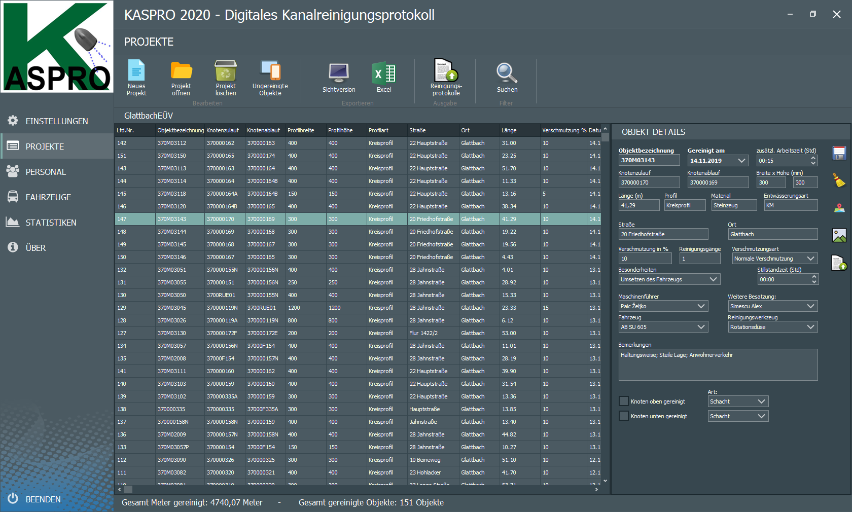 Erfassung von Standortdaten (GPS), Verschmutzungsgrad, Stammdaten, Werkzeugen, Besonderheiten, Fotos zu einzelnen Objekten, uvm..